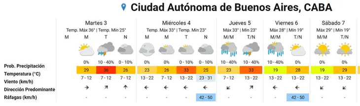 Según el pronóstico del SMN, las temperaturas alcanzarán su pico semanal el martes. A partir de entonces, se espera un descenso gradual de las máximas, con una caída más pronunciada tras las lluvias previstas para el jueves.